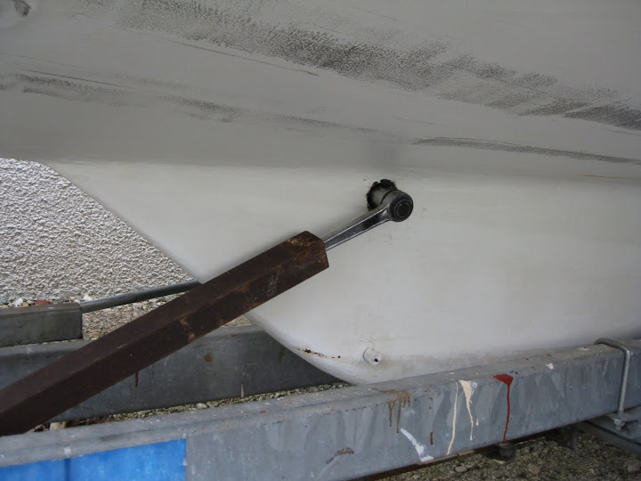 J’enleve le boulon. En faite, je me suis longtemps demandé a quel moment l’enlever, j’ai opté pour le dernier moment de peur que la derive ne « rotatione » pas correctement