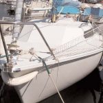 – la prise de ris automatiquePar contre, vu le logo de la voilerie sur la GV, je pense que la grand voile est celle d’origine. Meme si elle est en bon état, ça doit lui faire plus de 20 ans, je parierais pour qu’elle soit un peu (très) creuse… Je suis en train de voir pour en avoir une neuve sur Cully, il faut compter 600 euros si tu veux la faire faire en France.